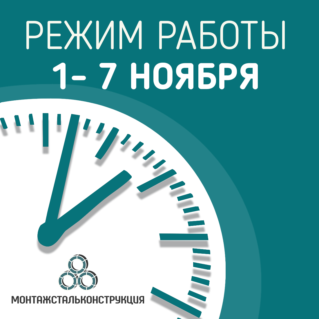 РЕЖИМ РАБОТЫ "МОНТАЖСТАЛЬКОНСТРУКЦИЯ" 1-7 ноября