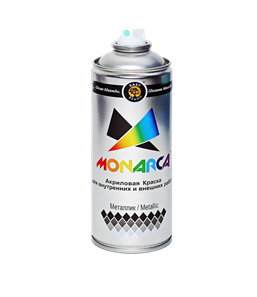- Усовершенствованная пигментная композиция обеспечивает наилучший результат при окрашивании дерева, металла, пластика, бетона, камня, стекла, картона. Финишный слой обладает улучшенными показателями стойкости к воздействию атмосферных и погодных факторов) и УФ-излучению. Технологические параметры эластичности, однородности и твёрдости финишного слоя значительно увеличивают срок эксплуатации окрашенных изделий).MONARCA® Аэрозольная краска RAL стандарт рекомендована для окрашивания и подкраски изделий из профнастила, металлочерепицы, металлического штакетника и сайдинга, водостоков, элементов крепежа, доборных элементов. Быстросохнущая формула позволяет в кратчайшее время исправить потертости, царапины, сколы, возникающие при монтаже, транспортировки и в процессе эксплуатации.Гарантировано точное соответствие цвета стандарту RAL (каталог CLASSIC К7) благодаря постоянному спектрофотометрическому контролю каждой партии готовой продукции. Продукт разработан с учетом особенностей российских климатических условий и максимально адаптирован к спецификациям лакокрасочных покрытий, применяемых российскими металлургическими комбинатами, производящими конечную продукцию из профнастила и его производных. • Широкая цветовая гамма • Эффектный металлический блеск • Укрывистость до 3 м2. • Быстросохнущая формула • Высокая степень адгезии • Стойкая к ультрафиолету • Без подтеков • Дерево, Металл, Пластик, Камень • Для внутренних и наружных работ